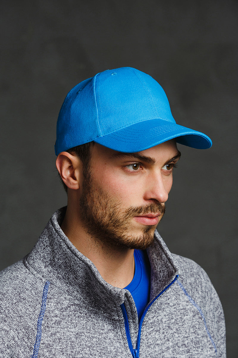 Fasongsydd twillcaps med 6 paneler og buet brem. Regulerbar metallspenne.