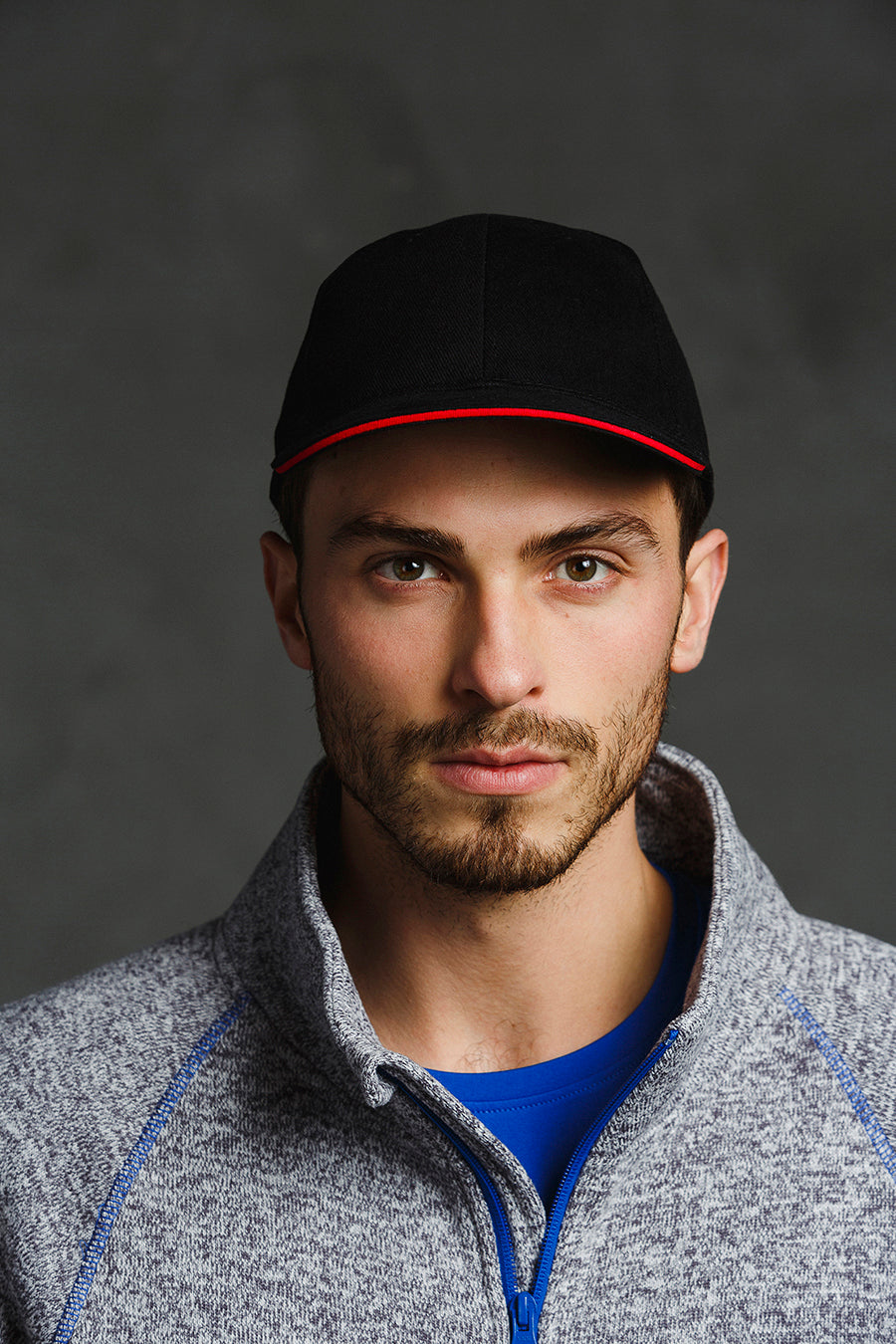 Fasongsydd twillcaps med 6 paneler og kontrastpiping i brem. Regulerbar lukning med metallspenne.