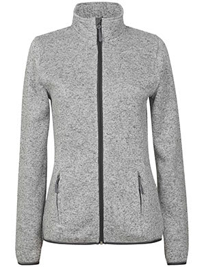 Behagelig mellomlagsplagg, strikkefleece-jakke, sidelommer med glidelås, flatlock-sømmer, børstet innside, nuppebehandlet.