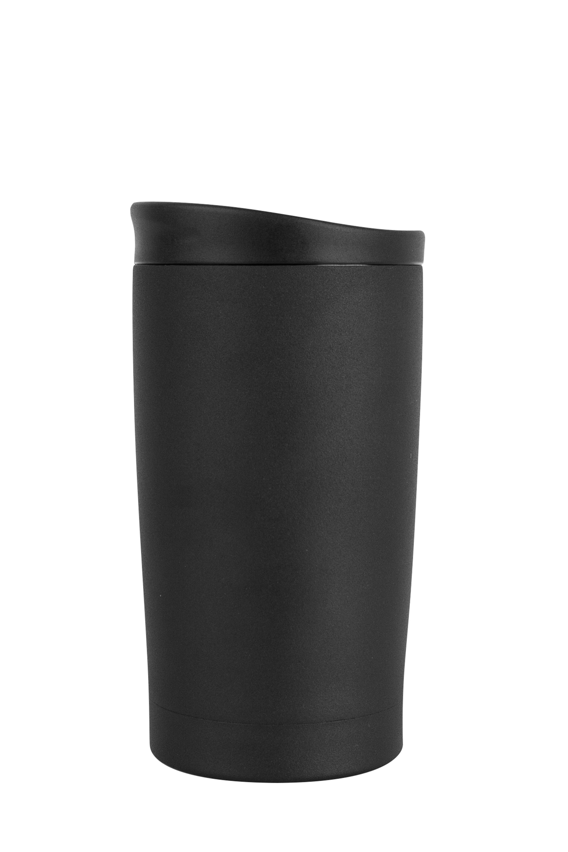 Lett og lekker termokopp i rustfritt stål. Lokk i sort hardplast med åpne/lukke-funksjon. Dobbeltisolert for ekstra lang bevaring av kald og varm drikke. Leveres i gaveeske. Pulverlakkert matt.