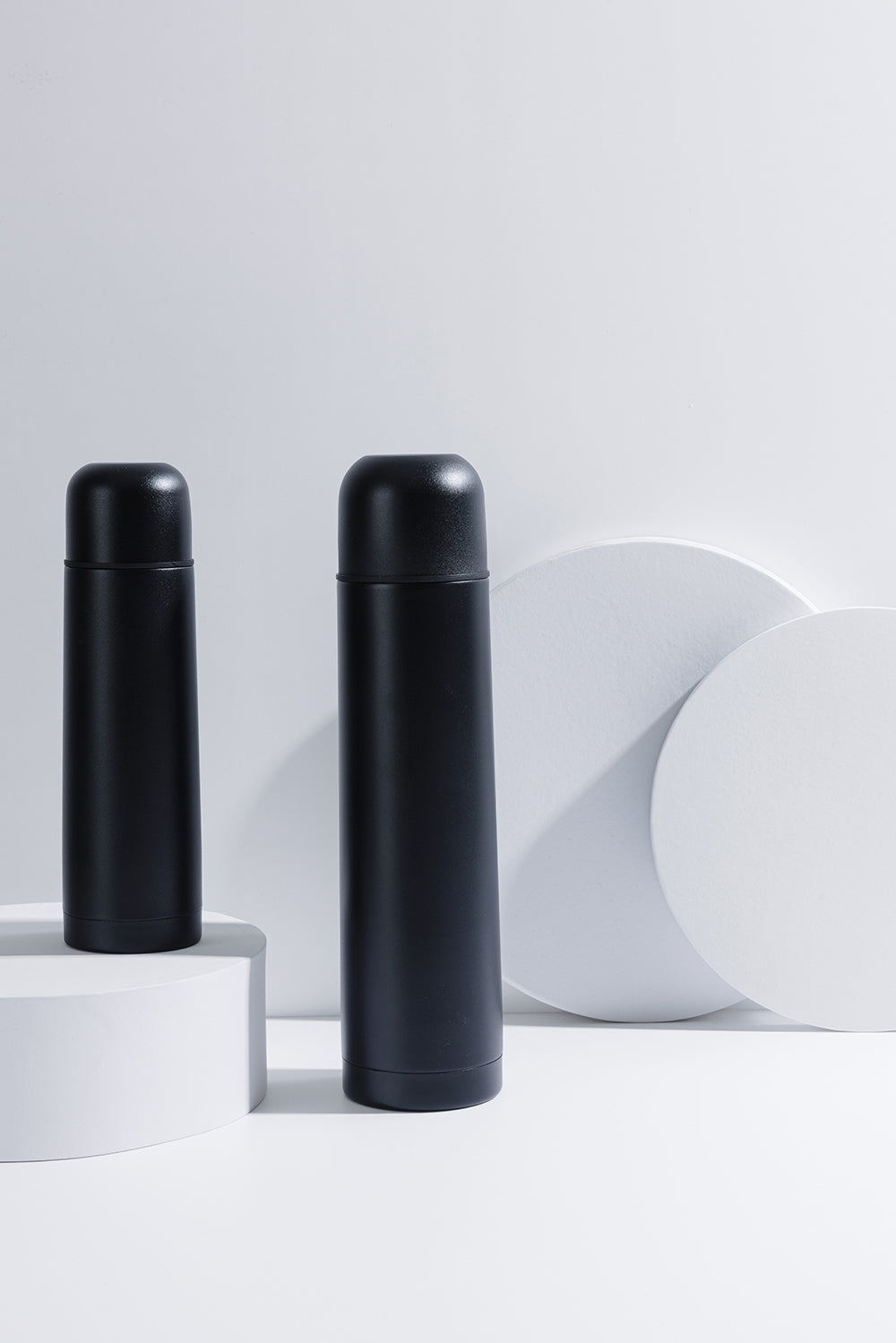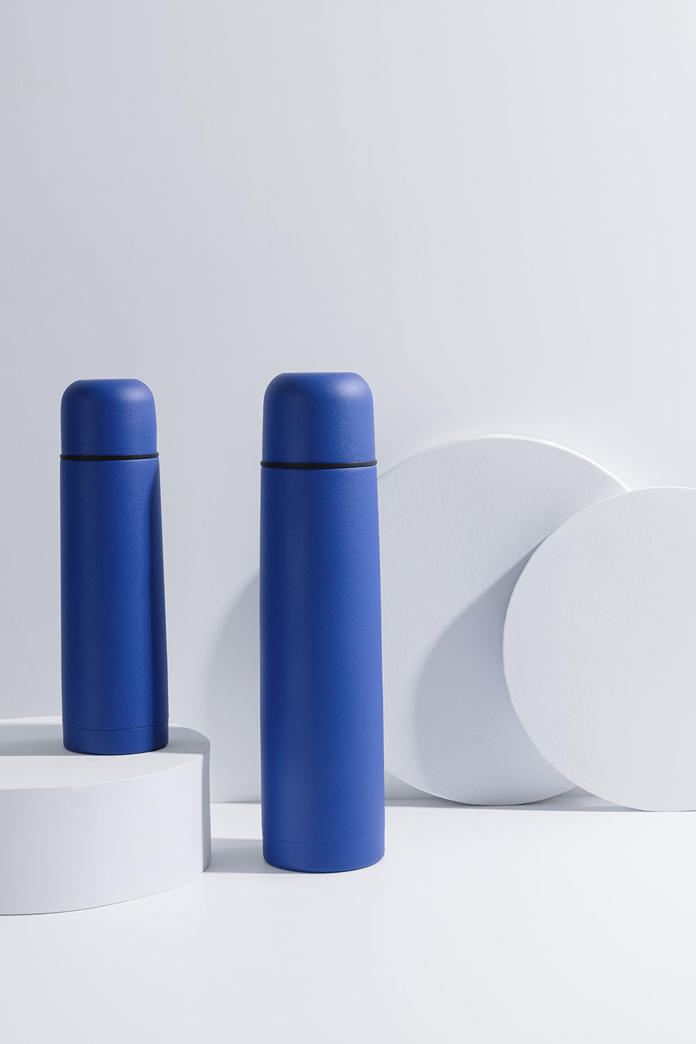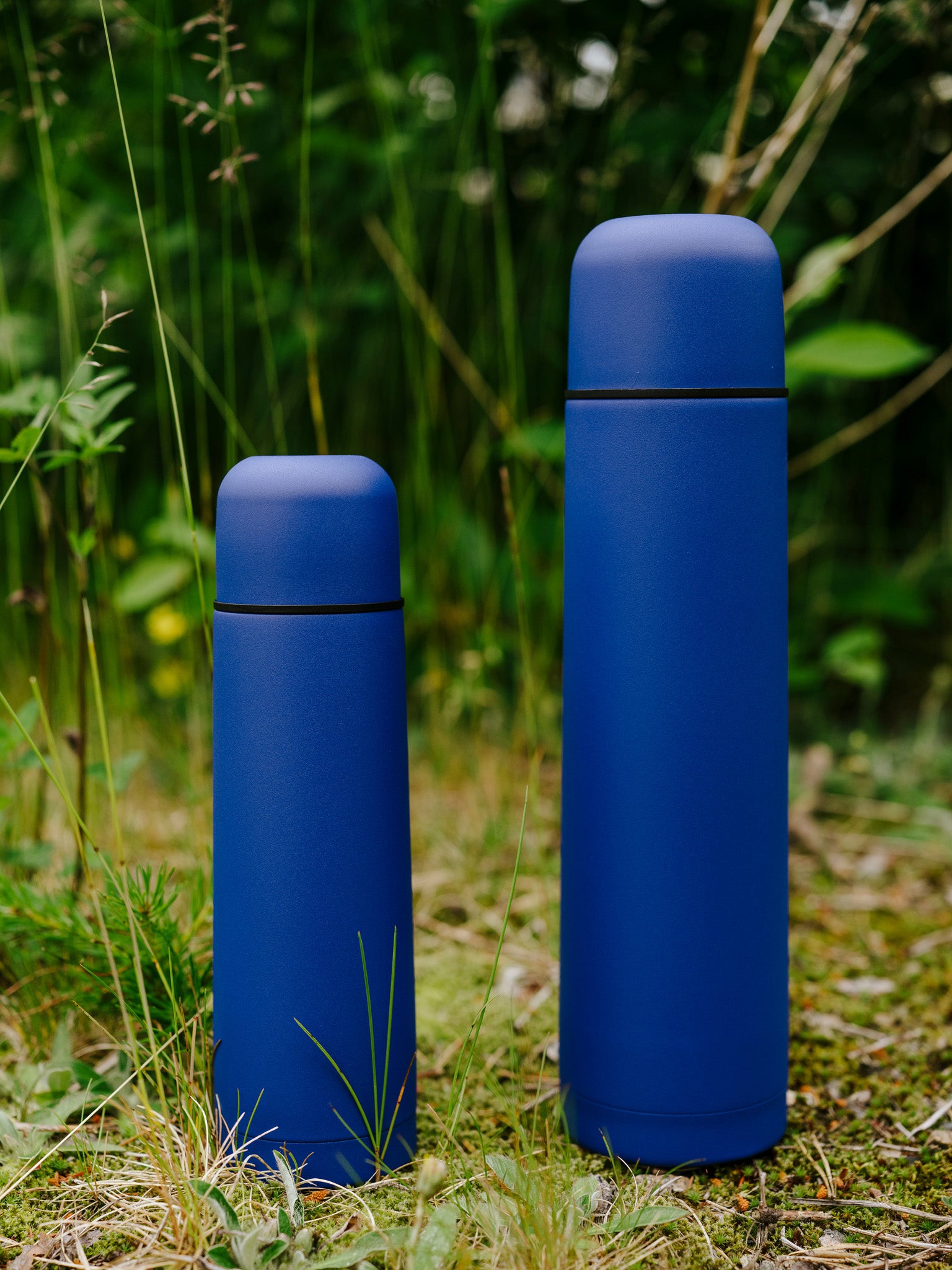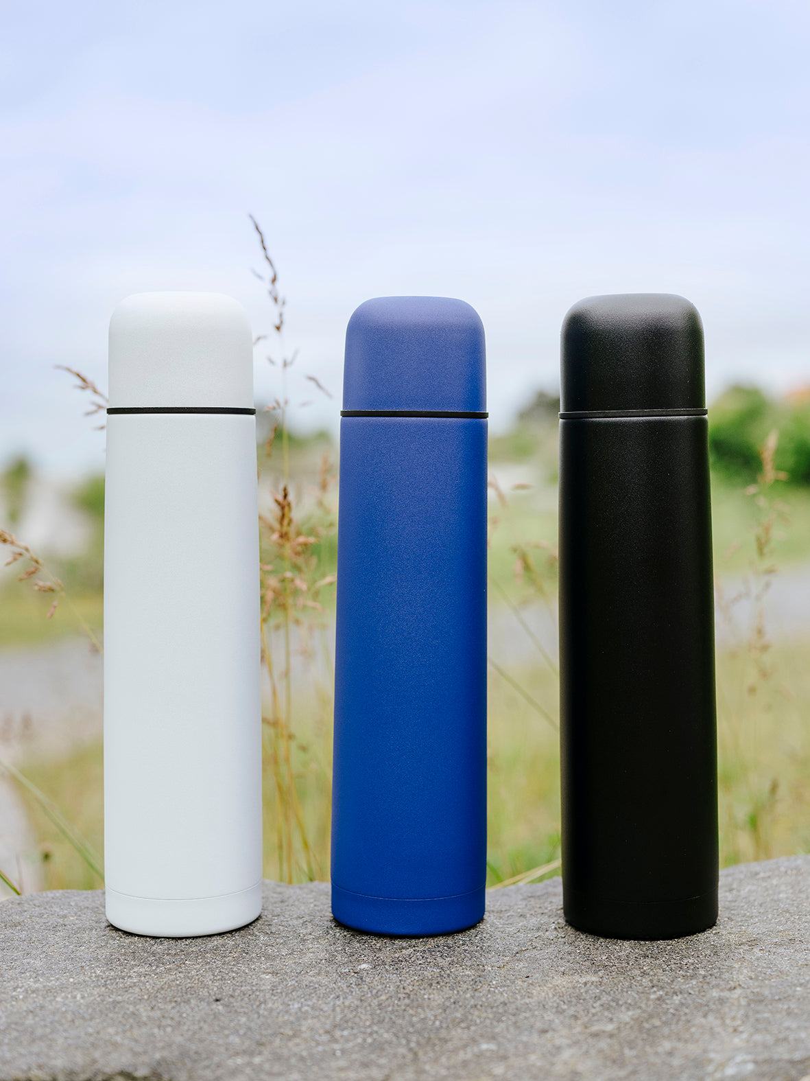 Smart drikkeflaske i rustfritt stål. Dobbeltisolert for ekstra lang bevaring av kald og varm drikke. Flasken holder drikke kald opptil 24 timer eller varm opp til 12 timer. Stålfarget skrukork og praktisk bærehåndtak i silikon. Leveres i gaveeske. Pulverlakkert matt.