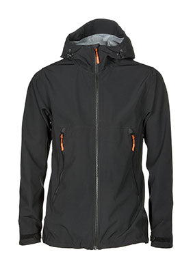 Behagelig softshelljakke i et vind- og vanntett stretch-materiale. Ventilasjonsglidelåser under ermene gjør at jakken egner seg for aktiv bruk. Fast, regulerbar hette. Elastisk snor i nederkant. Forlenget ryggparti. Borrelåsjustering nederst på ermene. Kommer med orange zippere som standard.