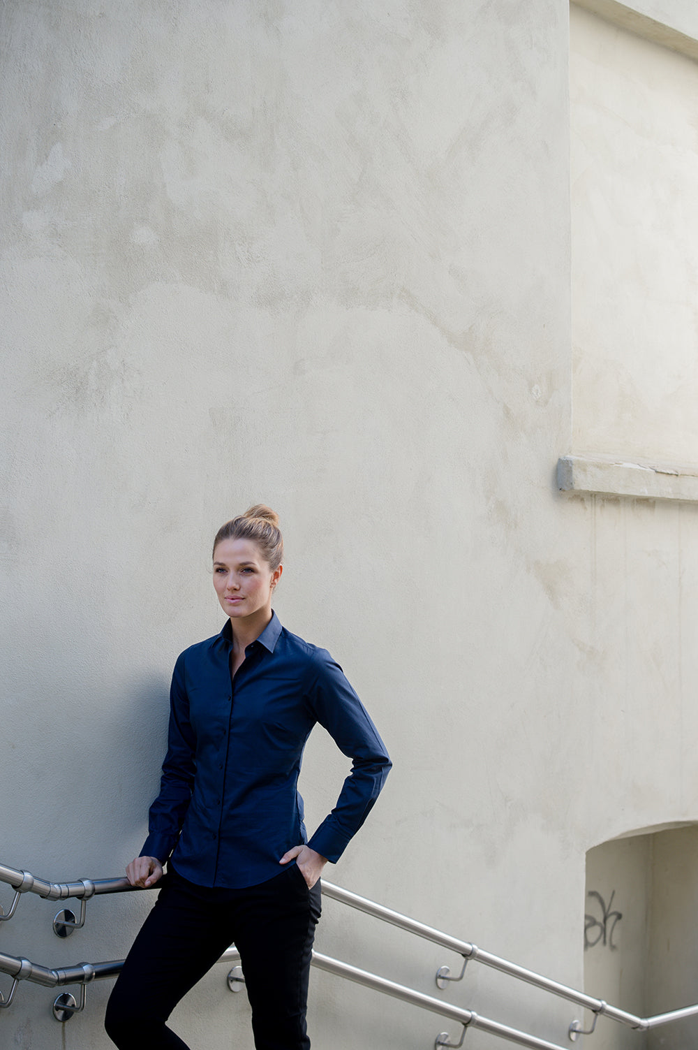 Figursydd stretchskjorte med kort, 3/4 og lang erm til dame. Easy care og rask tørk.