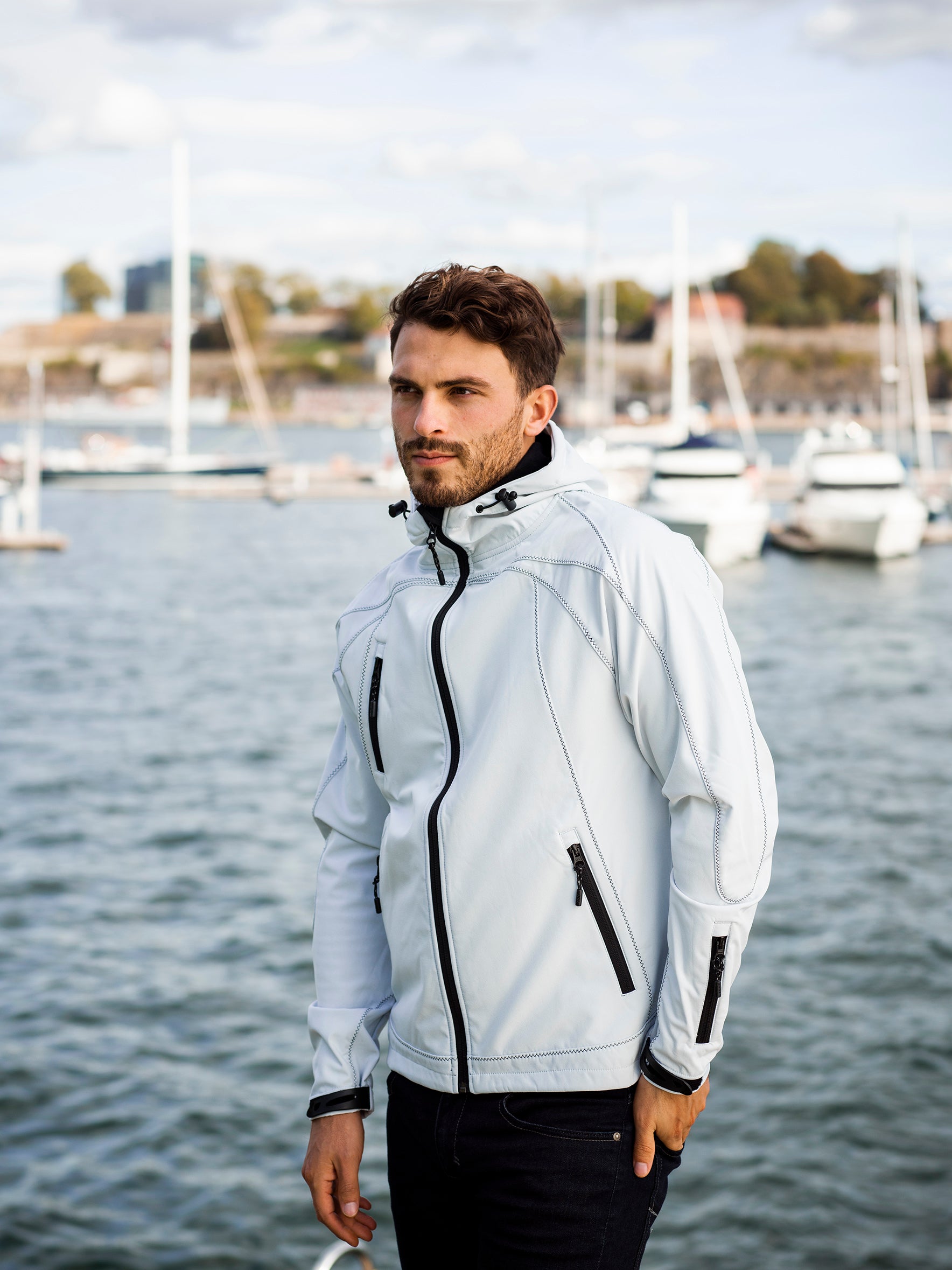 Lett figursydd herrejakke i stretchsoftshell. Tidsriktig design i pustende, vind- og vannavvisende 3- lags Dermi Tech som gir høy isoleringsevne og komfort. Dekorative flatlocksømmer og kontrastdetaljer. Elastisk linning og justerbar hette. Velcrolukning på ermer. YKK glidelås. Matcher 8611 Lousville.