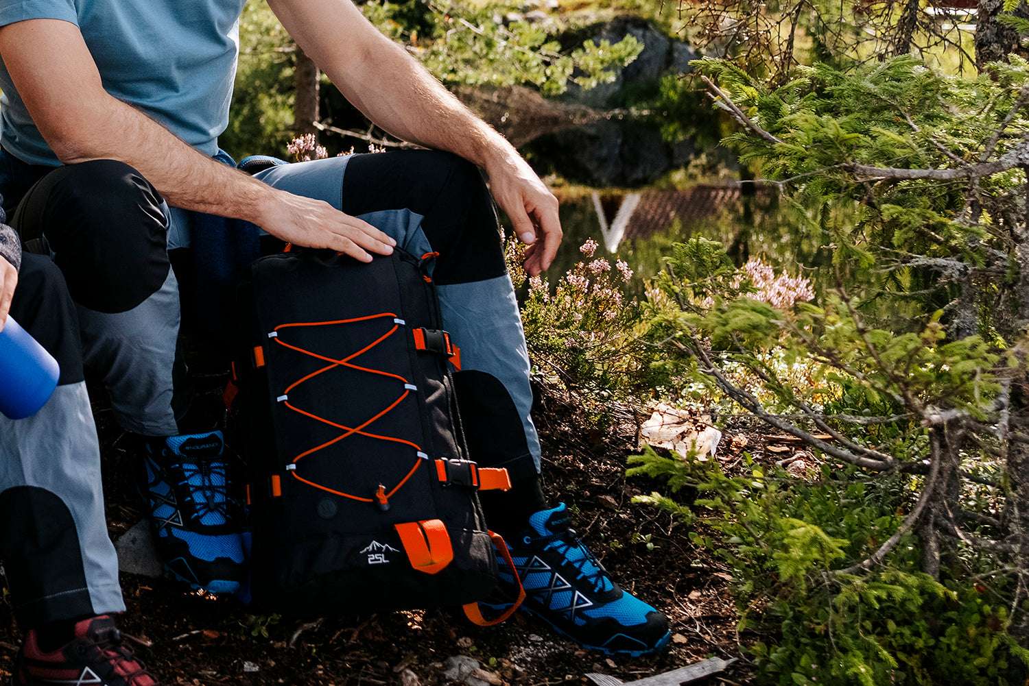 Ryggsekk med smart design og utbyttbar kontraststropp for variasjon. Stort hovedrom med glidelåslomme, og sidelommer med glidelåser. Polstrede bærestropper og justerbar bryststropp.