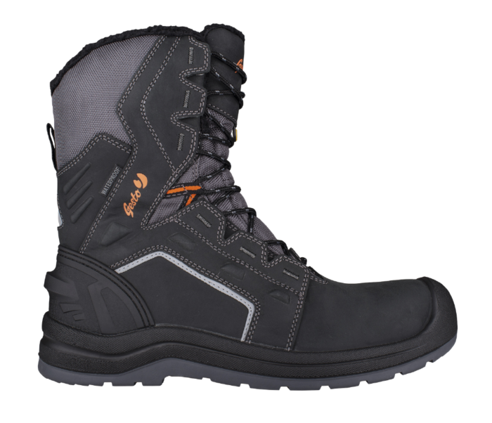 Vinterstøvel for utendørs tøft bruk, bygg og anlegg, håndverk, mekanisk industri, transport etc. Godkjent for bruk i ESD områder hvor statisk elektrisitet kan forårsake skade på følsomt elektronisk utstyr. Overdel i svart vannavstøtende lær med refleksdetaljer. Vanntett og pustende membran. Syntetisk pelsfôr i 100% polyester. YKK glidelås i siden gjør støvelen lett å ta av og på. Polstret toppkant og pløse. Vekt kun 910 gram (1 stk str. 42). Innvendig antibakteriell og fukttransporterende såle. PU mellomsåle. Gummi yttersåle, varmebestandig, oljebestandig og antistatisk. Ekstra bred lest. Sklihemmende egenskaper på keramiske fliser og stålunderlag (SRC). Tåforsterkning i PU. Tåvernhette og spikertrampsåle i kompositt.