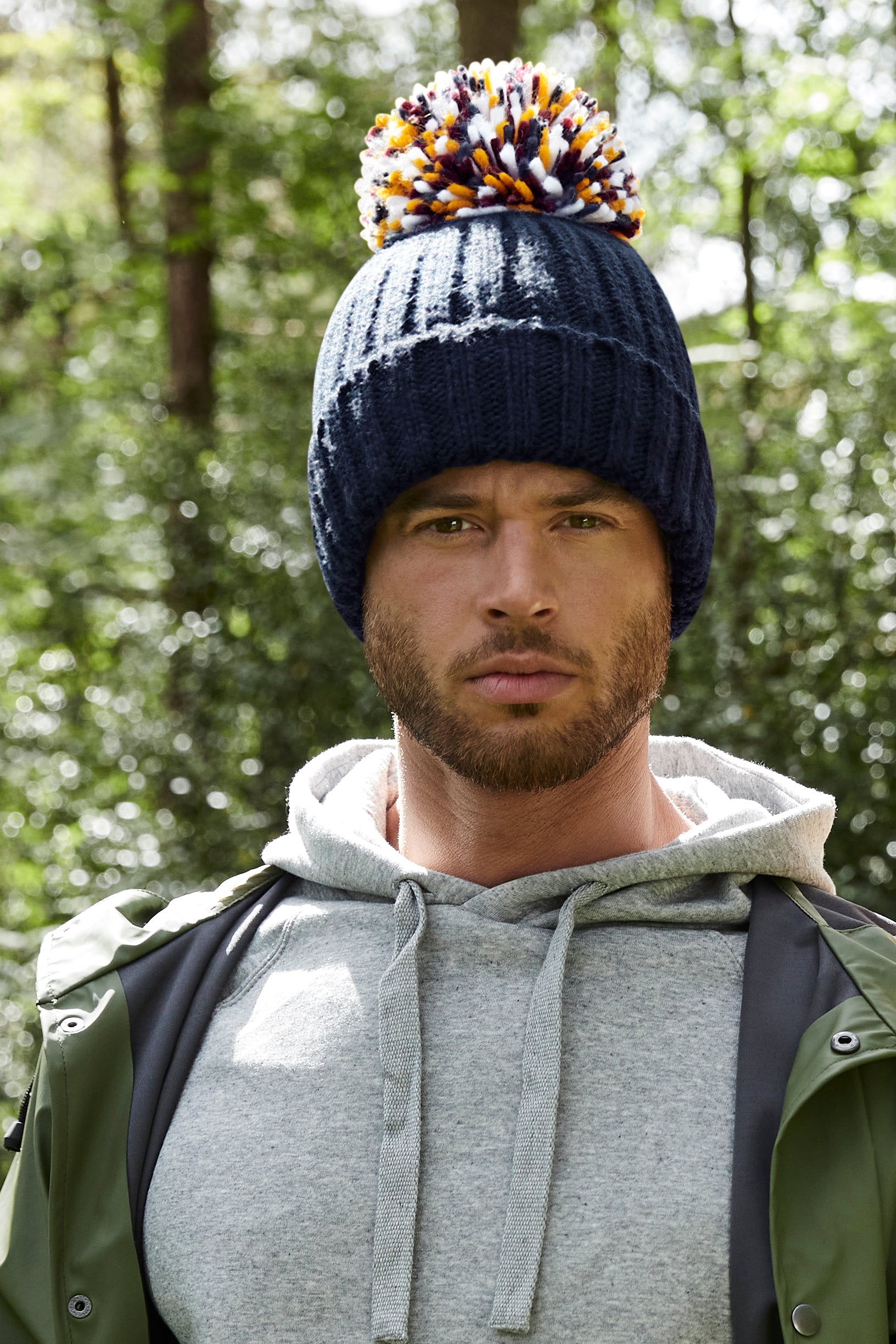 Tung ribbestrikket lue med overdimensjonert luksus-pompom. Luksuriøst Shearling-fôr for ekstra varme og mansjettdesign for optimal dekorasjon. TearAway-label for enkel omprofilering.
