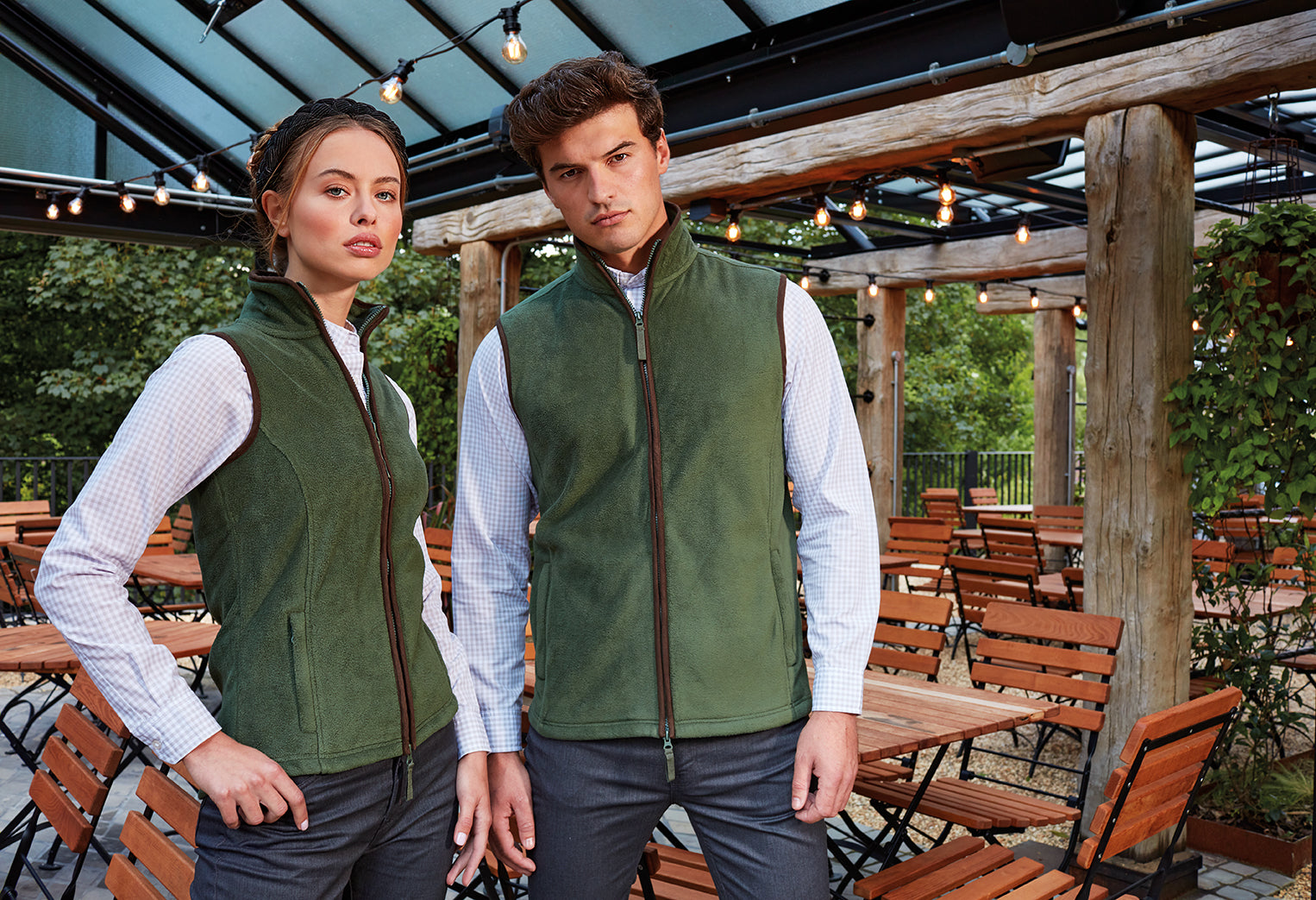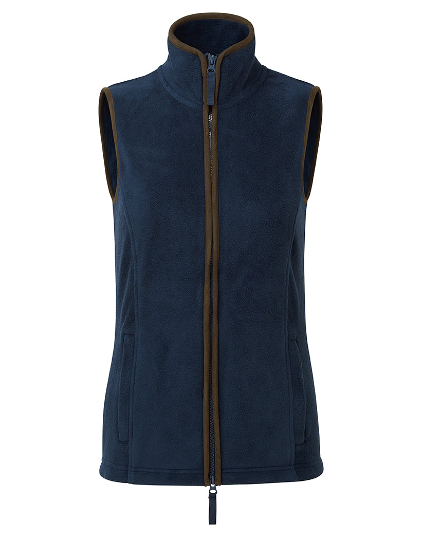 Fleecevest til dame. Kontrastpiping på glidelås, hals og i ermeåpning. Sidelommer med glidelås. Praktisk toveis glidelås i front.