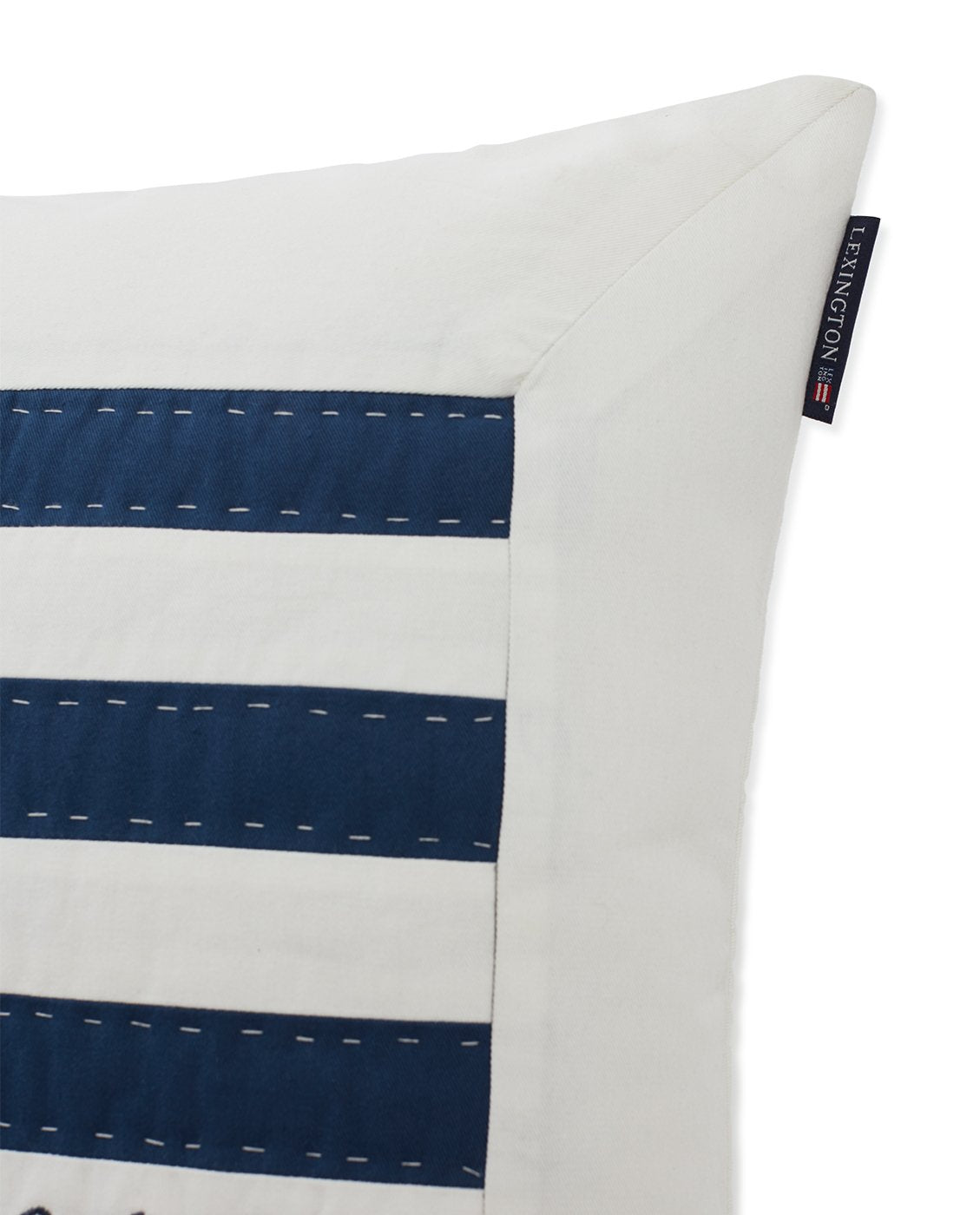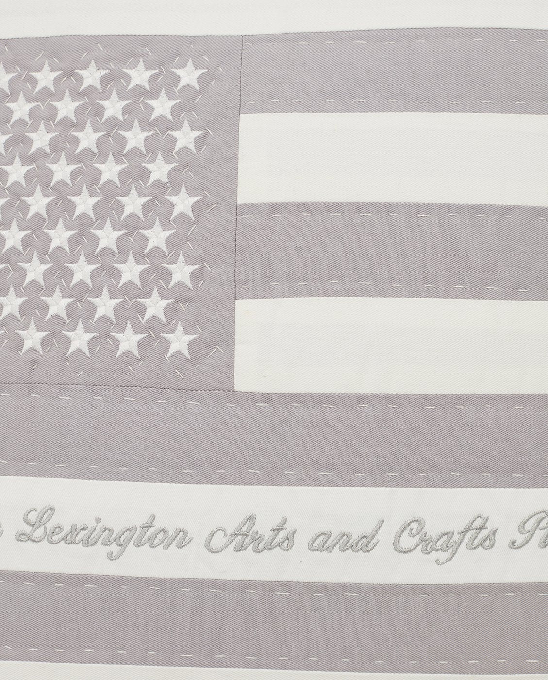 Dette putetrekket i bomull har en spennende kombinasjon av lappeteppedesign og broderi, som viser stjernene og stripene i det amerikanske flagget, samt teksten «THE LEXINGTON ARTS AND CRAFTS PILLOW». Putetrekket har skjult glidelåslukking nederst.