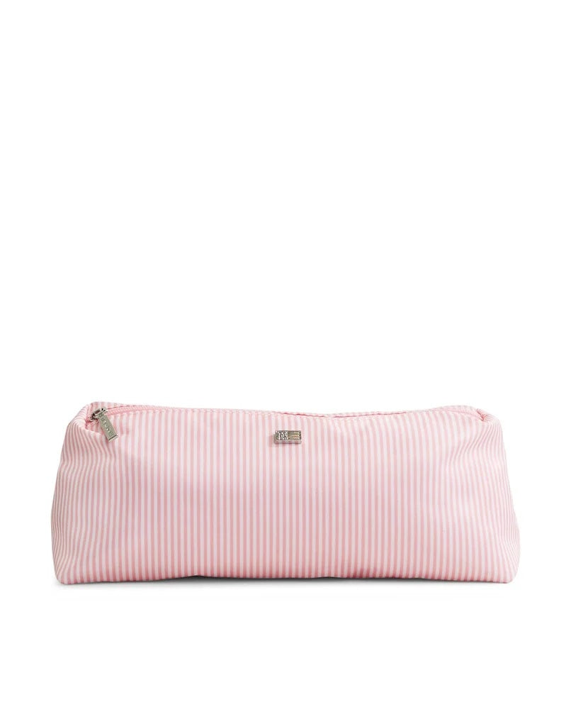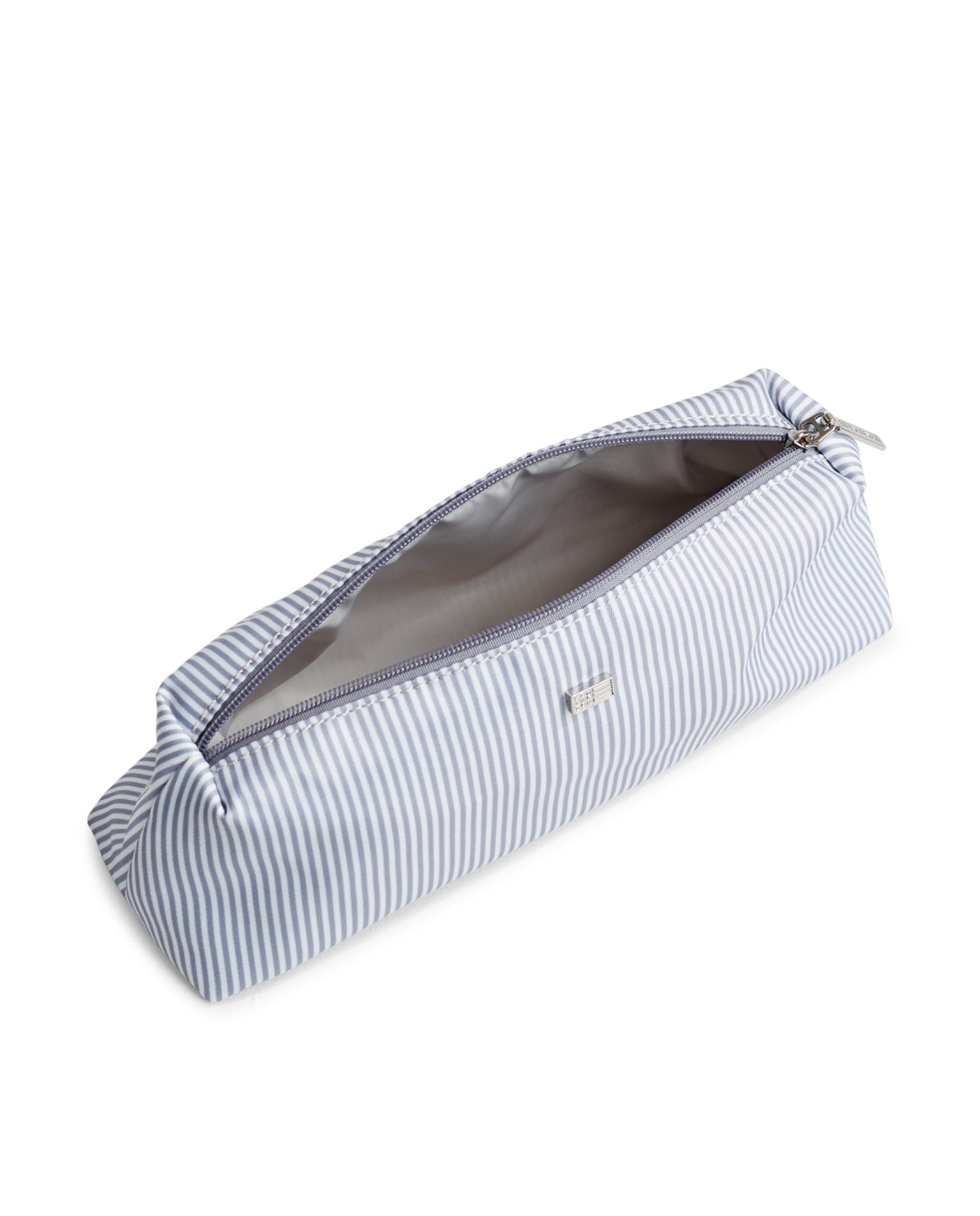 Denne sminkepungen i glatt, vevd polyester er behandlet med et vannavstøtende belegg og har et stilig stripemønster. Sminkepungen har polyesterfôr, sølvfarget glidelåsdrager og en nagle med preget logo.