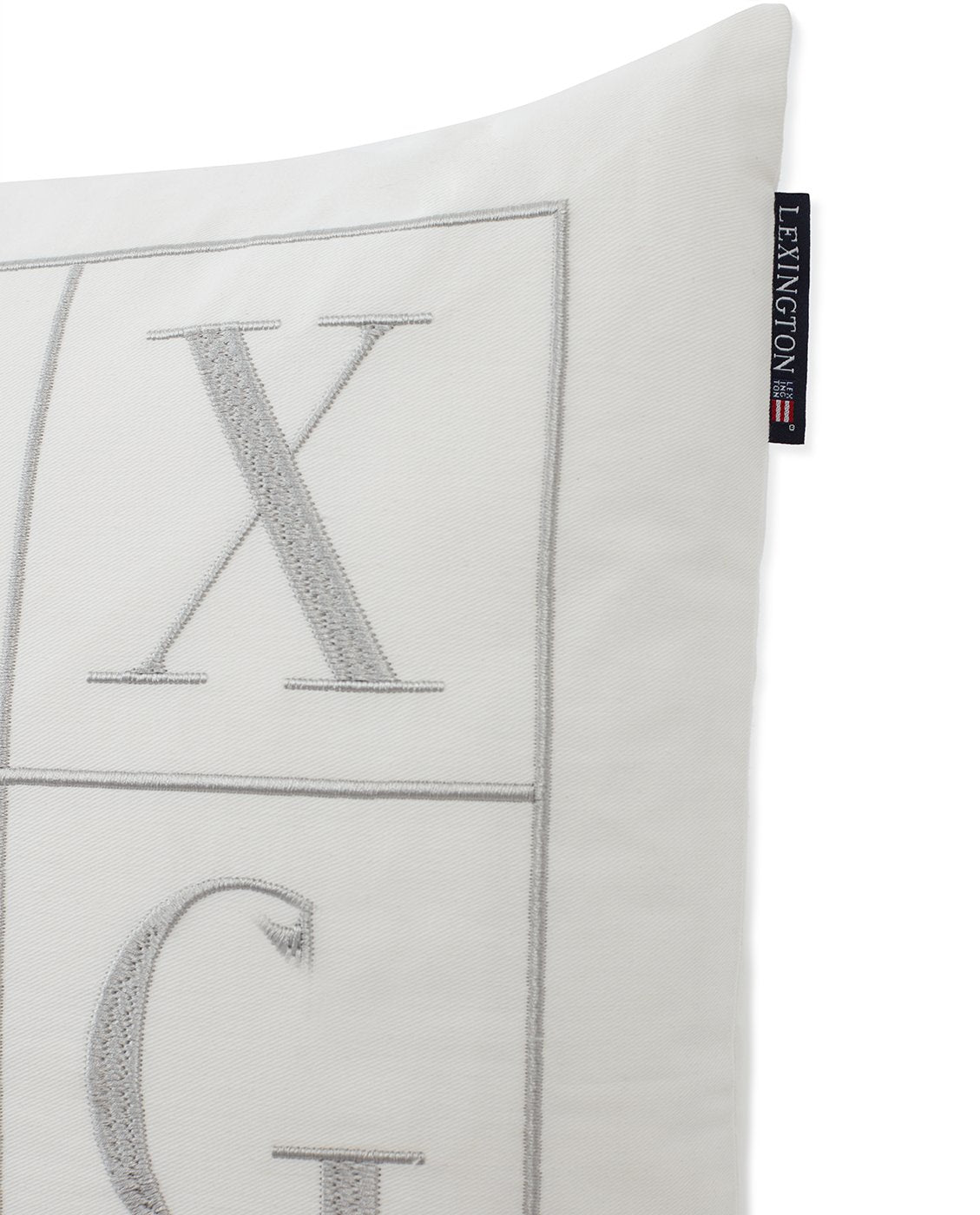 Dette putetrekket i bomullstwill har merkenavnet iøynefallende brodert i individuelle ruter. Putetrekket har skjult glidelåslukking nederst.