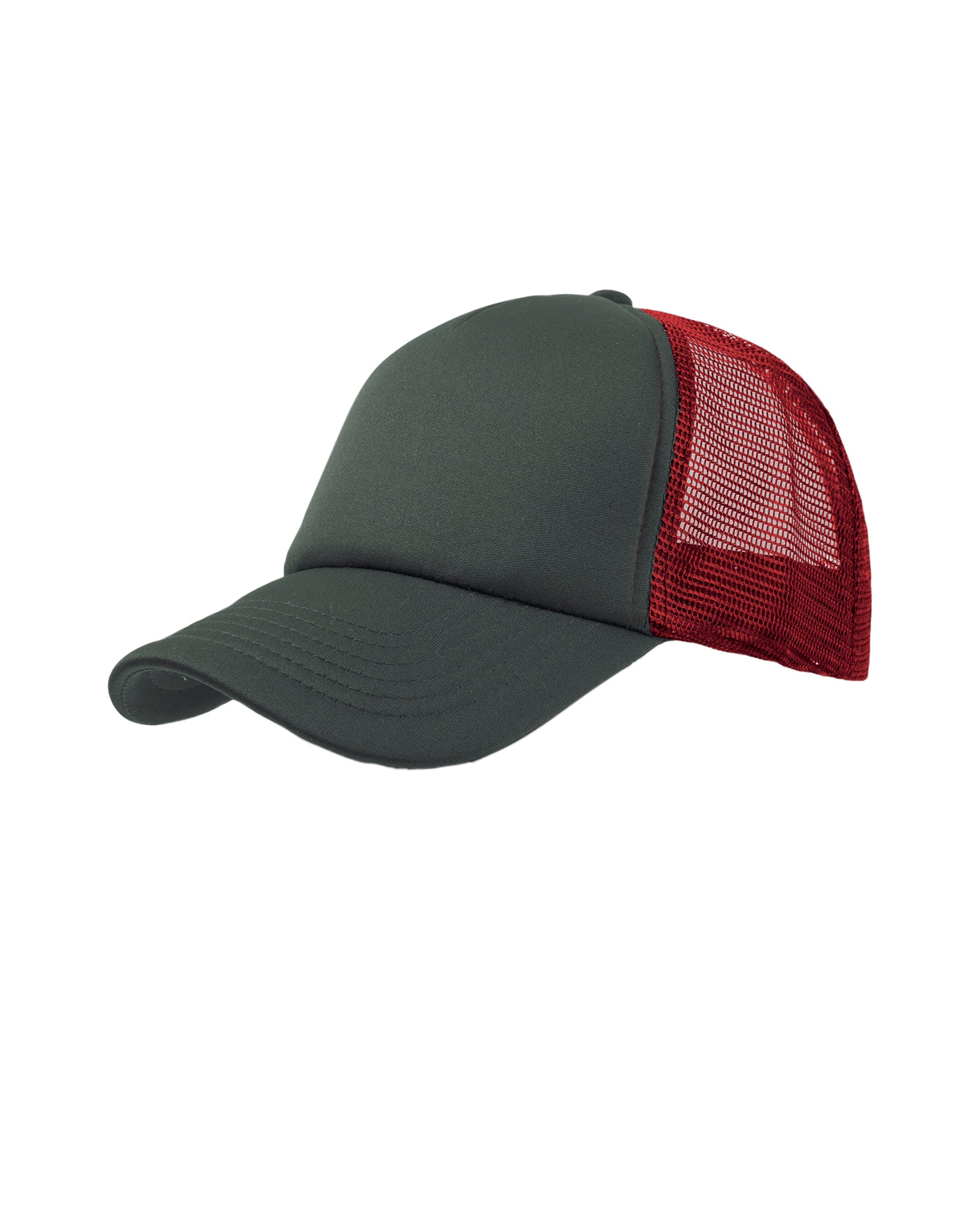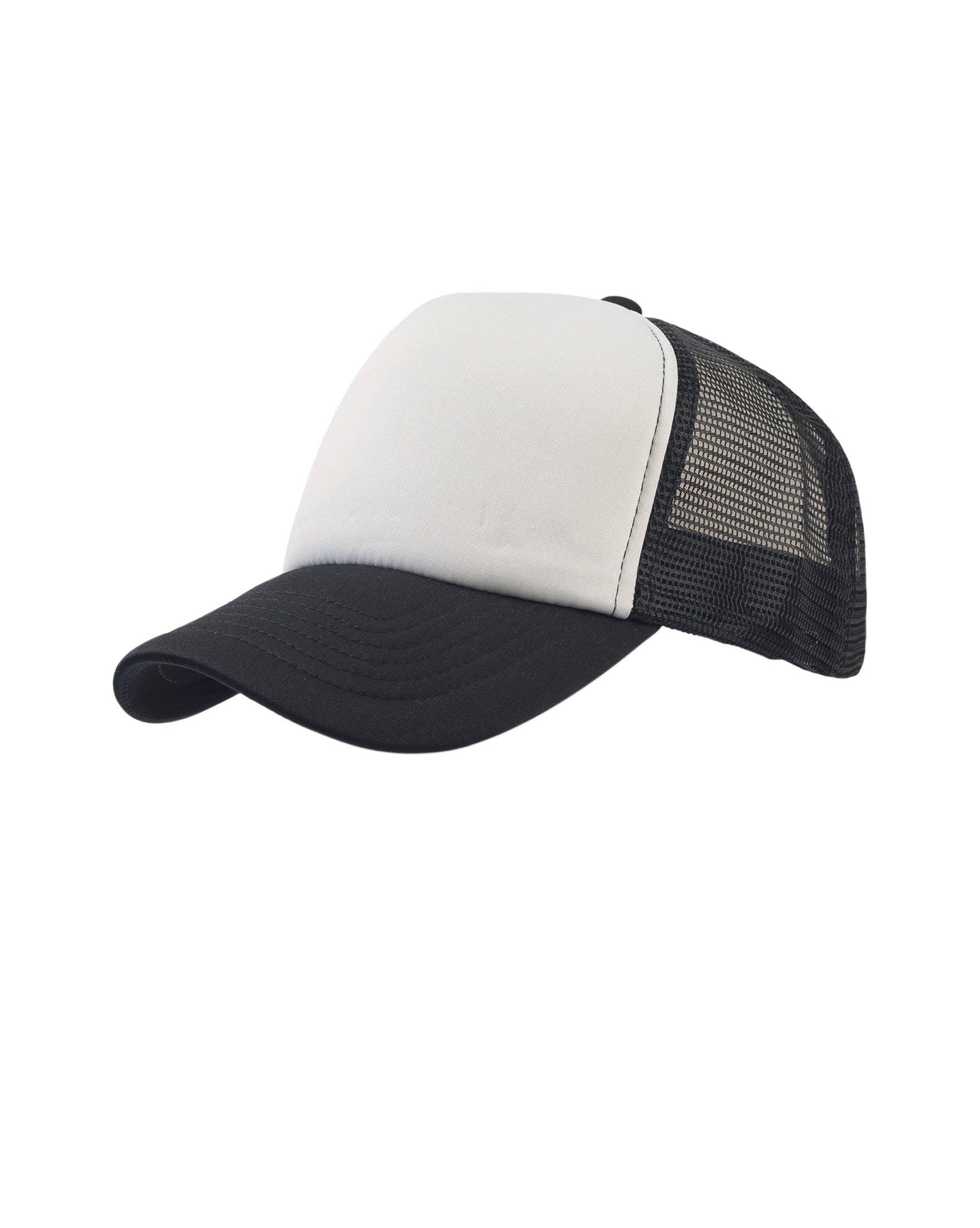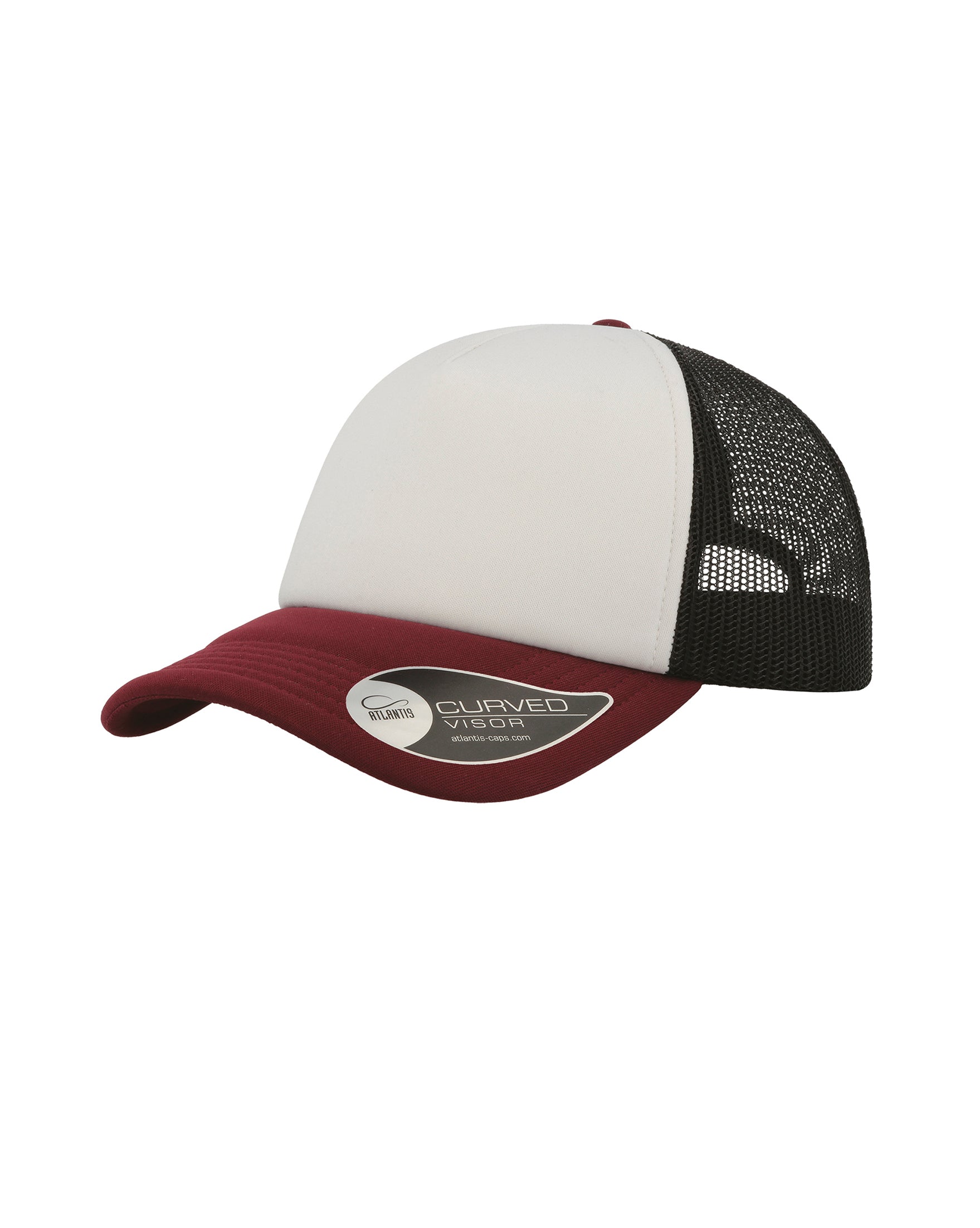 Trucker cap med 5 paneler. Buet brem og et godt utvalg fargekontraster. Mesh rundt sider og bak, paddet frontpanel og brem. Høy profil. Regulerbar pvc-lukning (snap back). Tear away label.