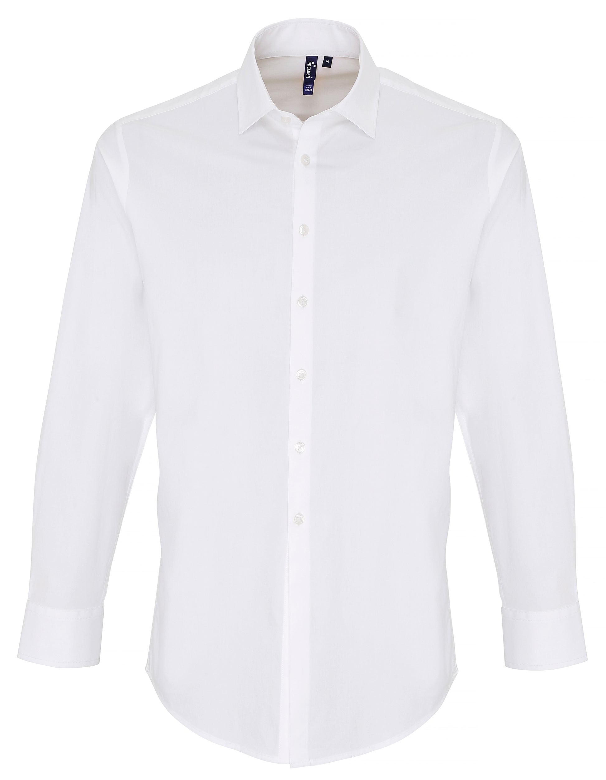 Stretch fit skjorte til menn. Bomull kombinert med elastan gir supermyk og elastisk komfort. Kan brukes både formelt med slips eller med åpen krage for en mer casual stil.