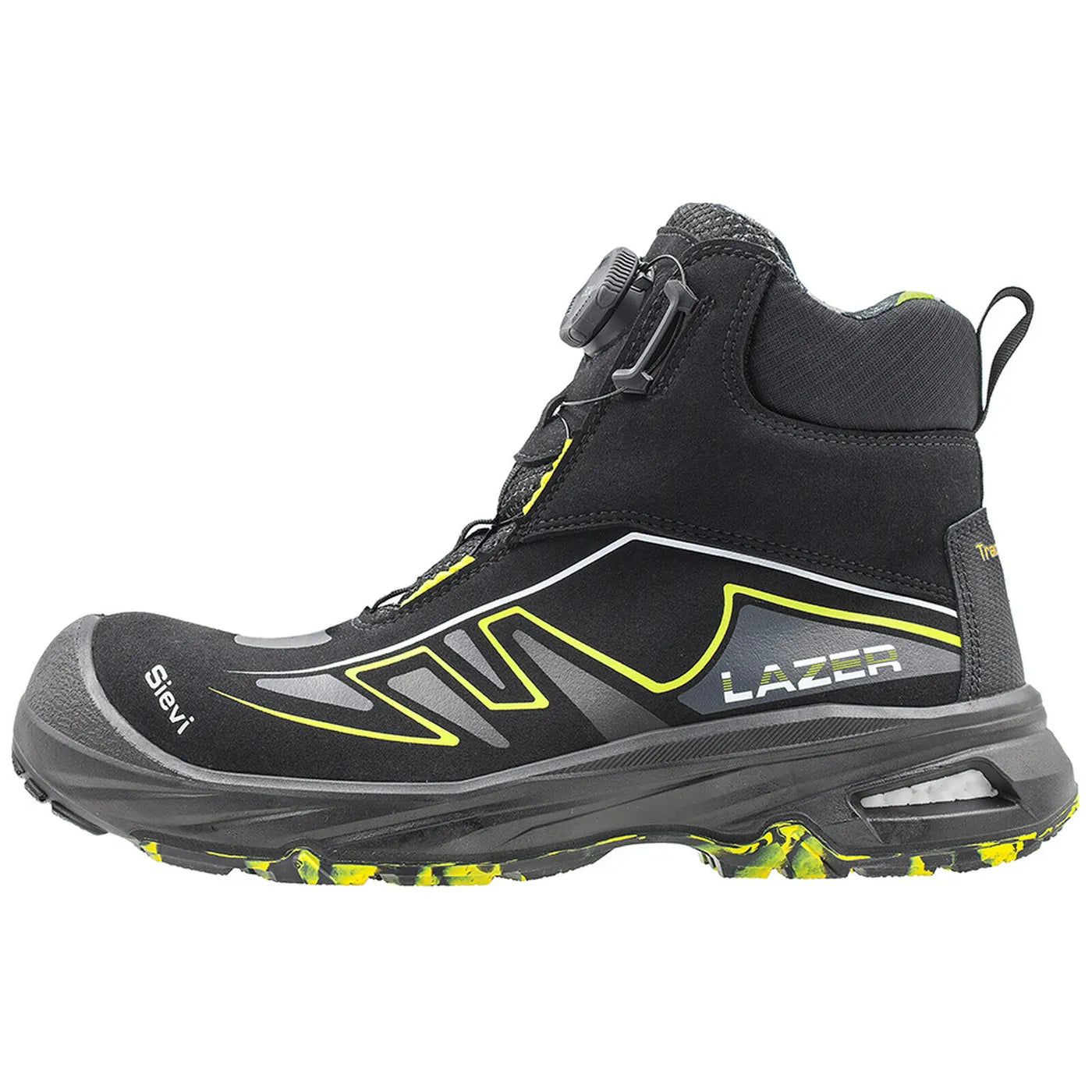 Skoletten Lazer Roller High+ har FlexEnergy®-komponenten, som er synlig gjennom åpningen på hælen. Dette øker skoens bevegelsesfrihet og fleksibilitet. Friksjonssålen Sievi TractionPro® gir utmerket grep. Ankelen har ekstra støtte med PORON XRD®, som former seg etter foten og gir støtte til ankelen og absorberer støt.