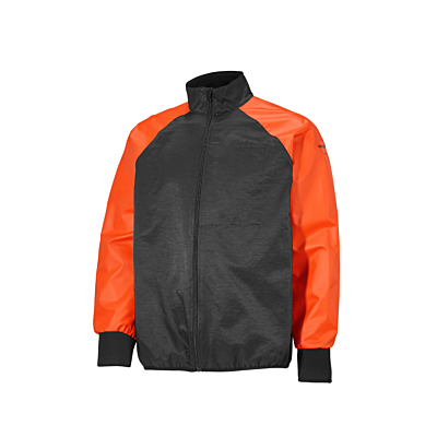 Jakke i kombinasjonsmateriale utviklet spesielt for fiskerinæringen. Ermer og skulderparti i vanntett PVC materiale. Front og rygg i slitesterk polyamid. Glidelås i front. Høy krage med mykt, behagelig materiale på innsiden. Innvending lomme ved bryst med glidelåslukking. Mansjetter i Neopren.