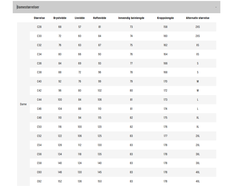 Tools Størrelse Oversikt