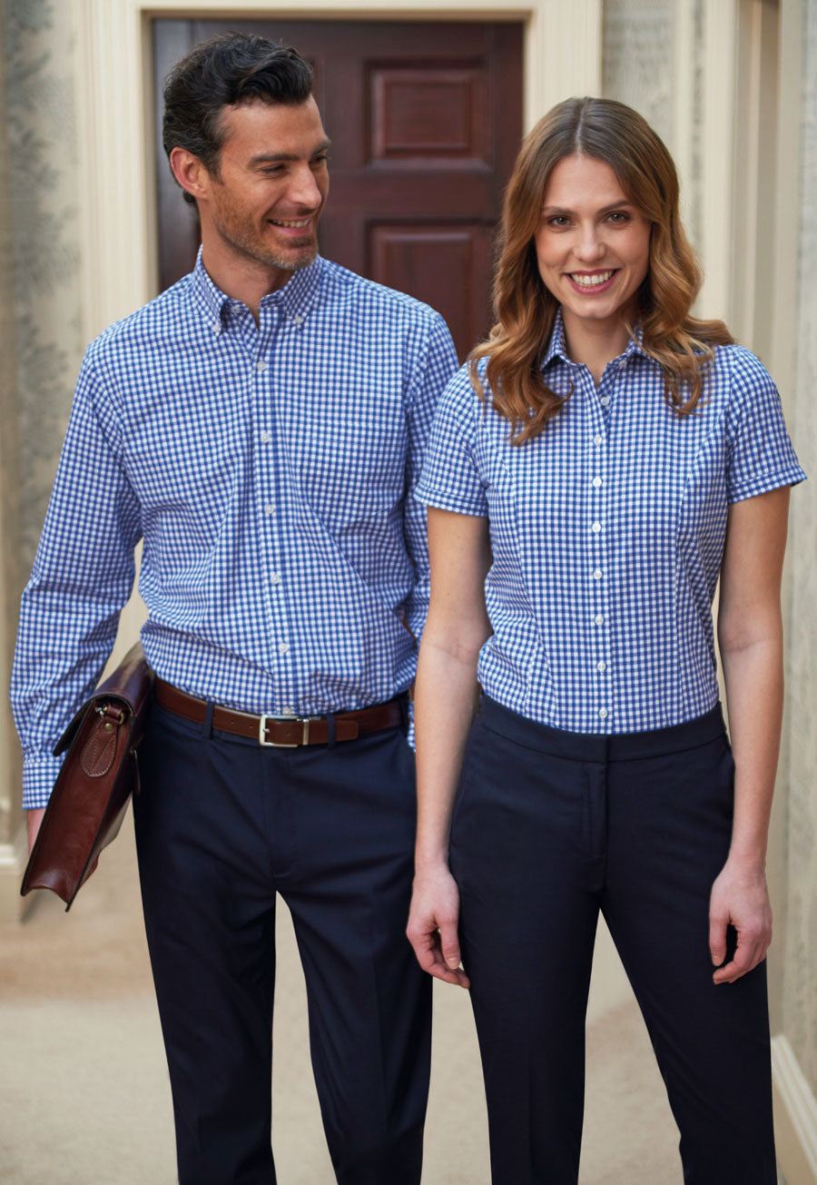 Gingham-mønstrete skjorte med lange ermer for herre. Tailored passform. Button-down krage og brystlommer. Strykelett.